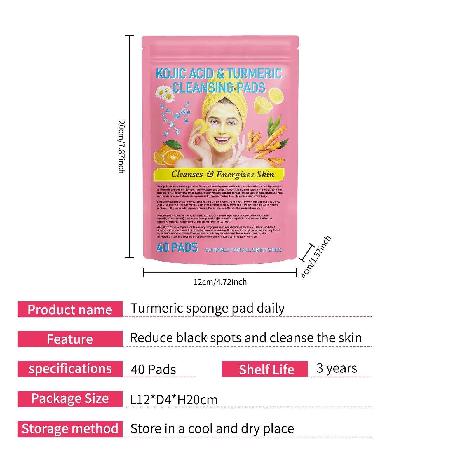 Kojic Acid & Turmeric Facial Cleansing Pads - 40 Count, Brightening Exfoliating Glow for All Skin Types, Dark Spot Treatment