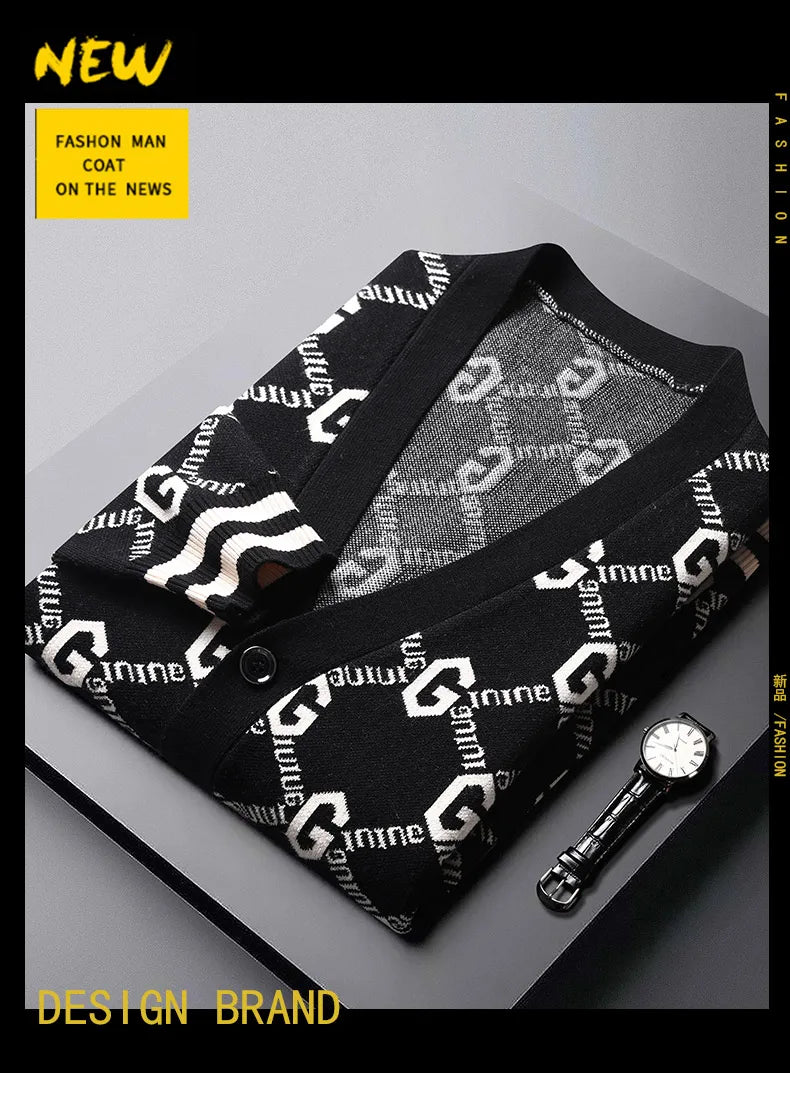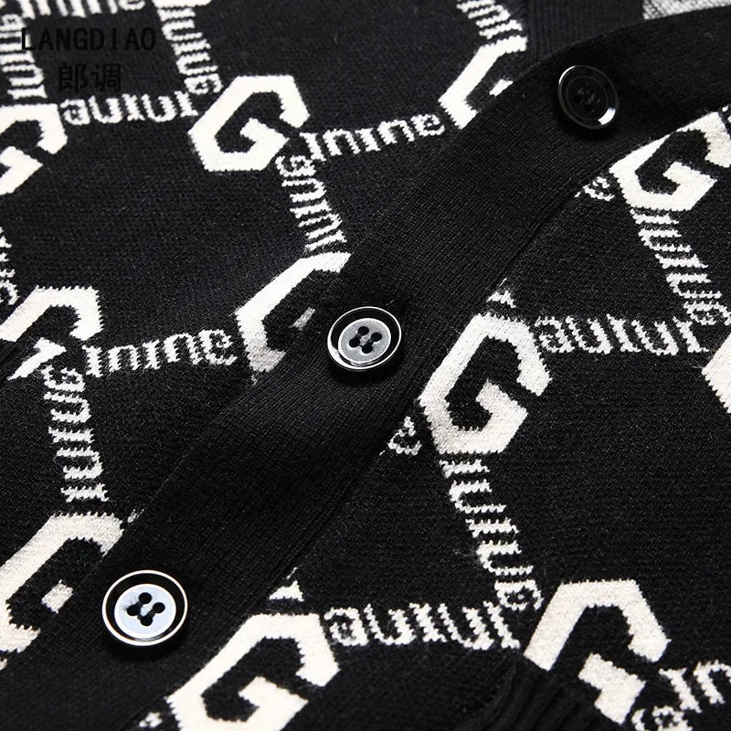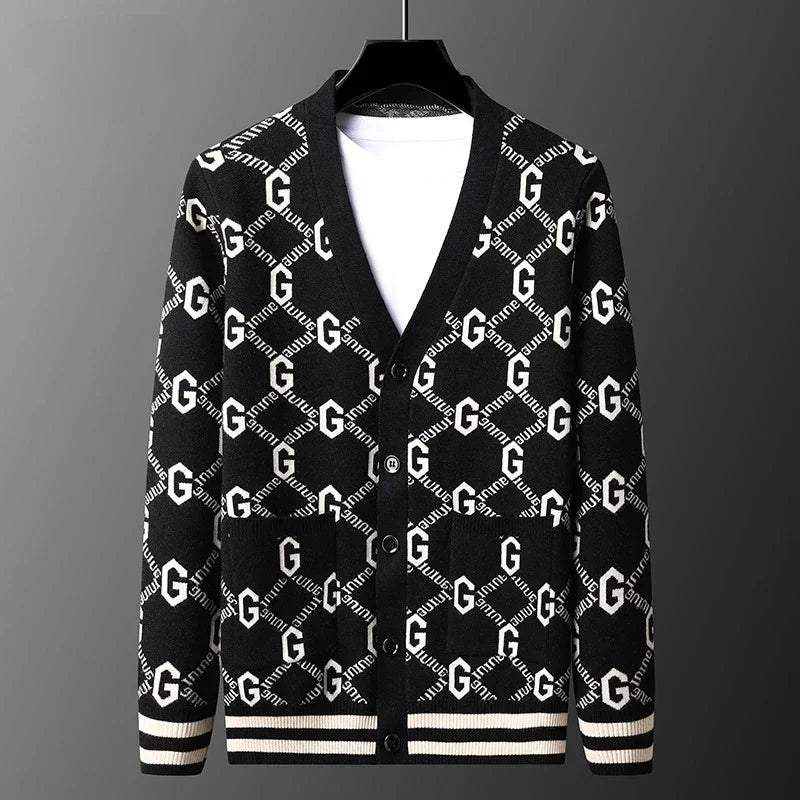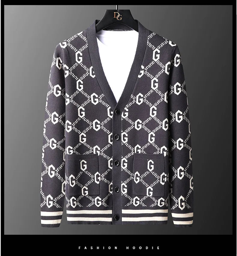 Luxury Quality Men's Knit Cardigan V-neck G Letter Jacquard Pocket Sweatercoat Japan Fashion Casual Exquisite Winter Men's Wear