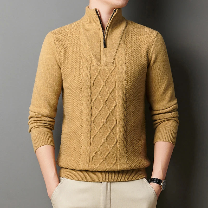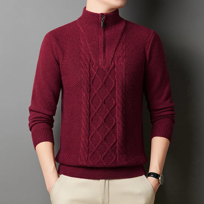 Men's Wool Sweater Half-Zip High-Neck Pullover Thickened Winter Dadwear Innerwear Base Layer