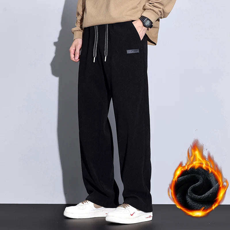 Winter Fleece Warm Stretch Corduroy Pants Men Thick Elastic Waist Korean Trousers Baggy Straight Jogger Outdoors Sweatpants Male